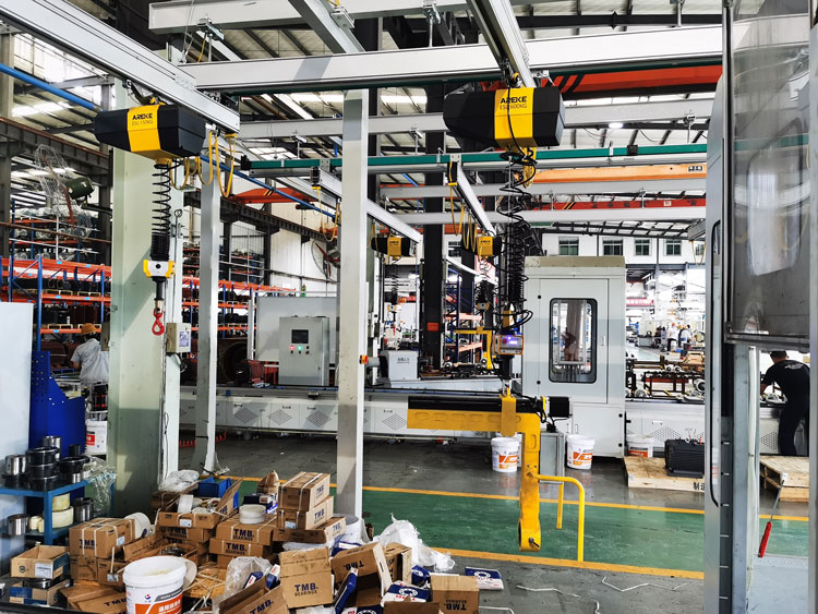 智能電動平衡器由智能控制加伺服電機感應系統組合而成的新型智能電動提升機,屬于現代智能科技產物,是一款智能物料搬運提升設備,利用懸浮特性平衡掉重物本身的重力,作業人員在基本感受不到重量的情況下,就可以輕松完成物料的搬運、吊裝等工程。智能電動平衡器利用電源驅動,鋼絲繩承重,相對于氣動類提升設備具有操作簡單、定位精度高、使用智能化、速度可控、可靠等特點,對降低操作工作的勞動強度、提高勞動生產效率有很大的幫助。